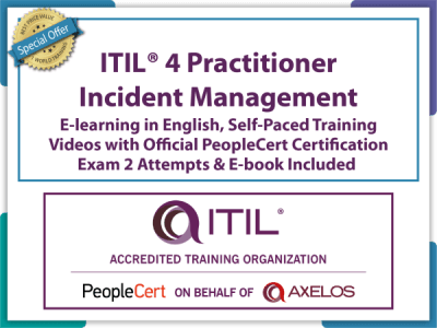 ITIL® 4 Practitioner: Incident Management E-Learning in English, Self-Paced Training Videos with Official PeopleCert Certification Exam 2 Attempts & Official Axelos Main Guide E-book Included