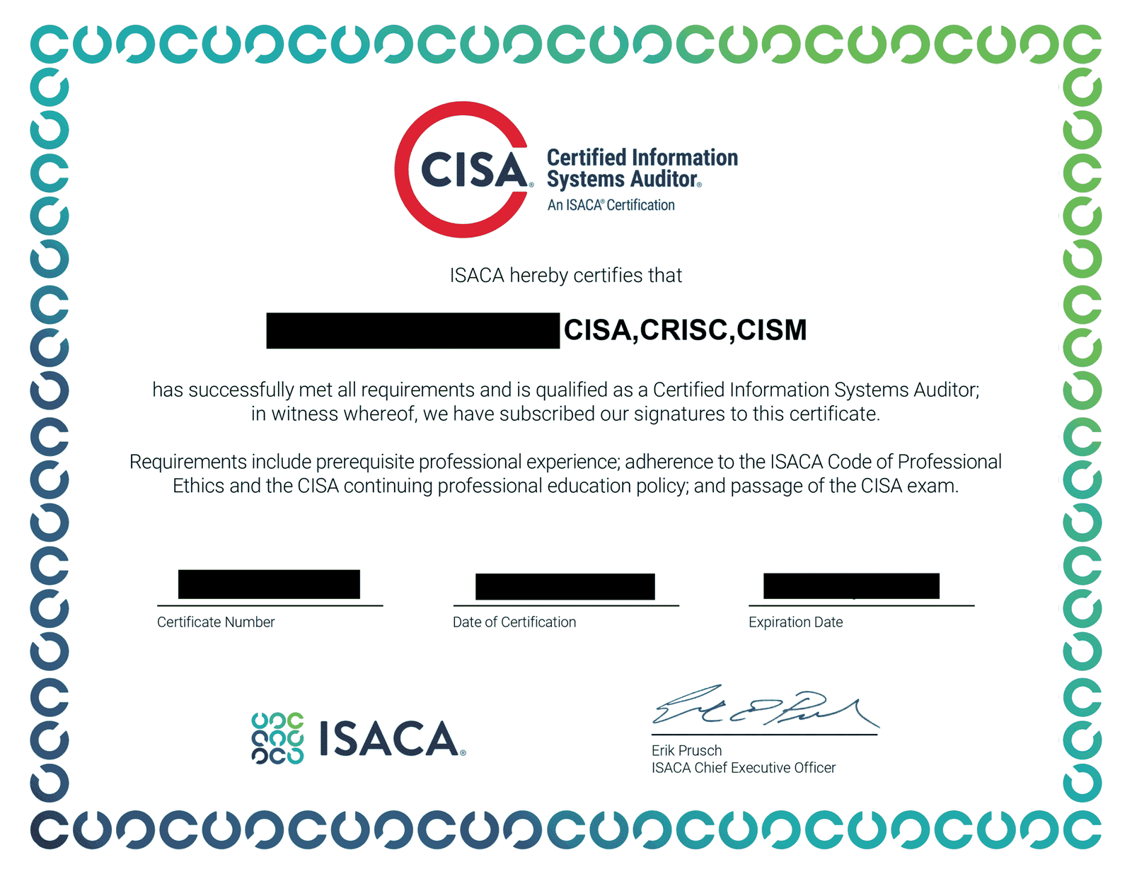 CISA is the globally recognized gold standard for IS audit, control, and assurance, in demand and valued by leading global brands. It’s often a mandatory qualification for employment as an IT auditor. CISA holders have validated ability to apply a risk-based approach to planning, executing and reporting on audit engagements.